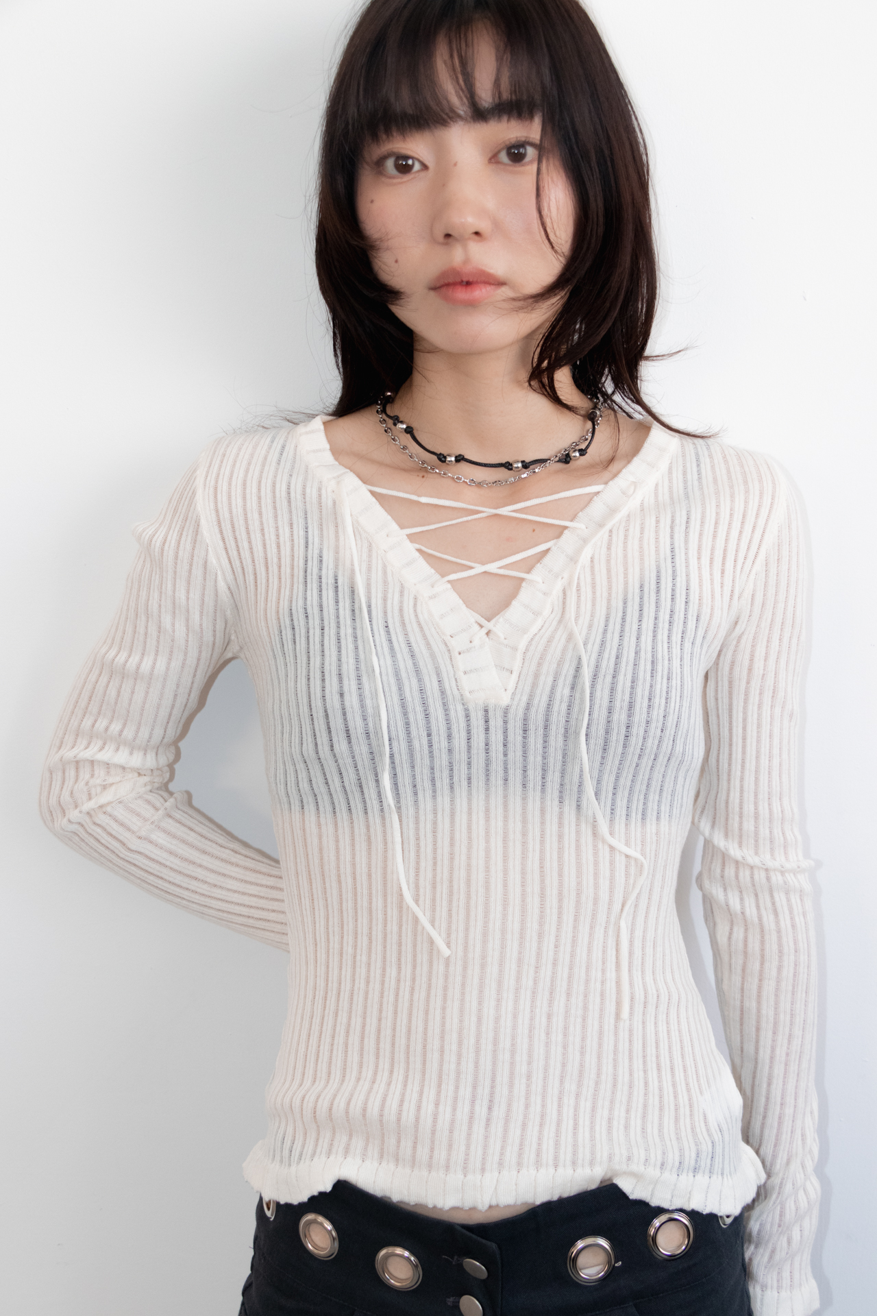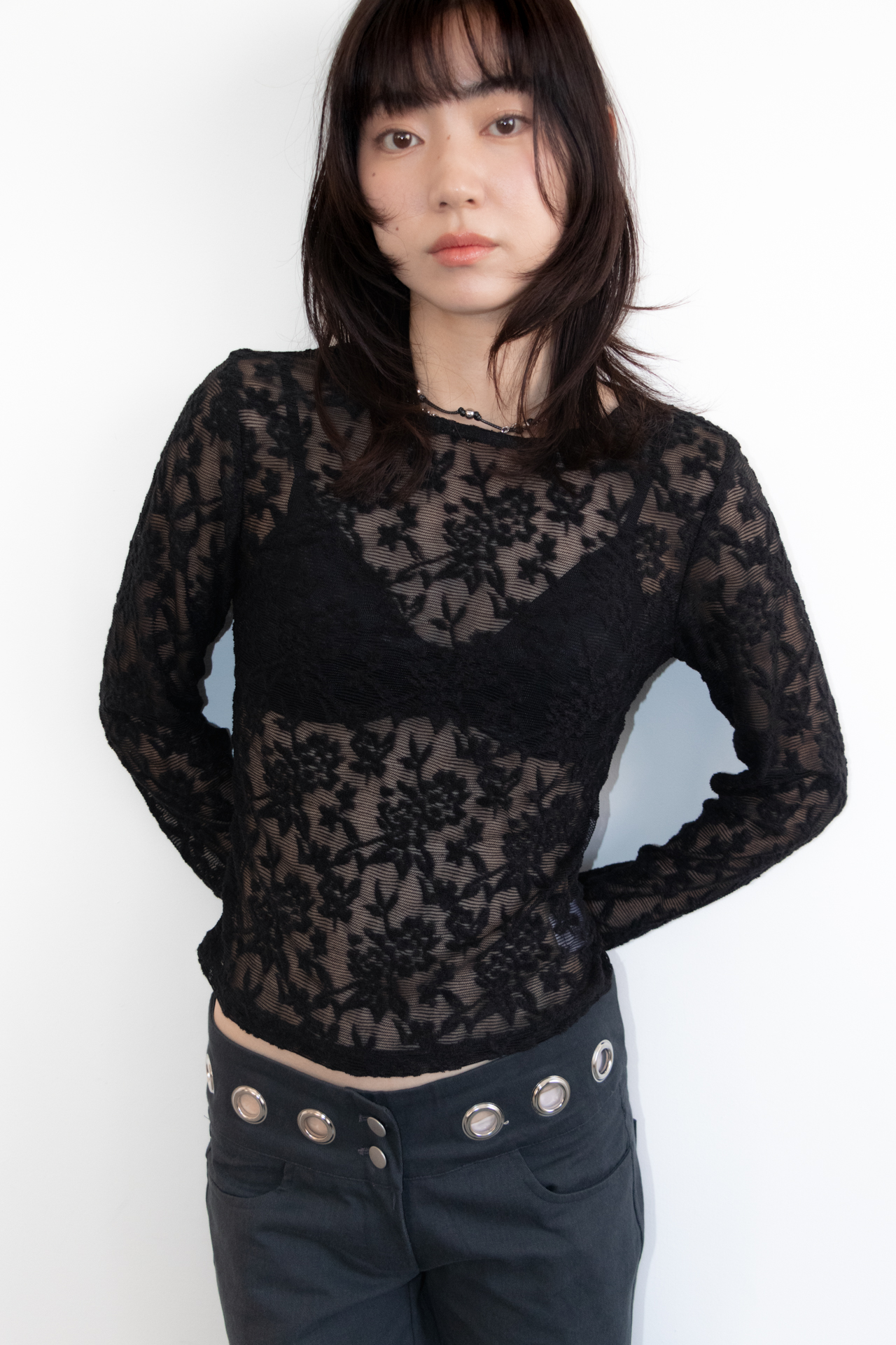 KR 鏤空五金時髦低腰微喇叭褲